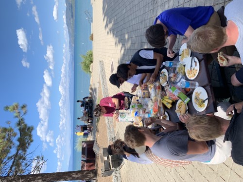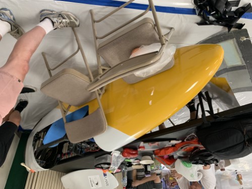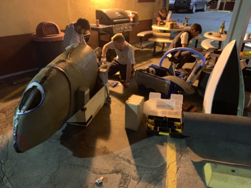 Much better start than last year on many fronts: 1) We flew into San Fransisco instead of Vegas, we didn't sleep in a casino, I actually got some sleep. 2) The bike was actually where it was meant to be and was picked up all OK, unpacked from the crate and loaded into the 18ft long SUV. unloaded & repacked, repeat a few times until everything fit. 3)Beatiful drive from San Fransisco through wine country and then Eldorado National Forest and then picnic lunch on Lake Tahoe: ( I can't get that image to rotate sorry) 4) Even got to the Big Chief to do some fettling and meet the Liverpool gang, Annecy, Adam Hari from Sydney and the Sprocket Rocket which looks veeeeeeeeery loooooooooooooooooong. Not sure how there's only space for 5 in there... Sprocket Rocket. This is minus the nose and tail. We'll go and register and have a snoop around the rest of the teams in the Civic Centre tomorrow...