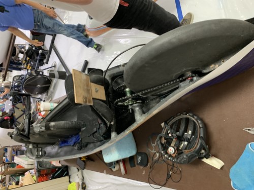 Latest from the front line: almost everyone is here except Mike Mowett and the Amminger tribe. Liverpool are only fielding two riders, viz. Ken and Yasmin. The Japanese entry failed tech inspection because they did not have redundant video systems, but have cut a small hole in the shell and installed one of Hans van Vugt's spare windscreens. Almost full complement of riders and machines expected in qualifying tomorrow am with Andrew Sourk needing time out for minor repairs and recovery from the 36 hour drive from Michigan and Guillaume (Annecy) and Noah (London South Bank) choosing not to ride because Reasons. That's if we run at all. At the moment (22:30 local time) it's chucking down and doing the old thunder and lightning business