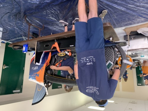 Saturday: Mooch around the Civic Centre in the morning taking photos of lots of very very nice looking bikes, all the result of thousands of hours on input from mostly student based outfits. Delft still leading the way (24 PSO's working on their bikes full time for a whole student year, each year starting from scratch), with Team Policumbent (Turin Uni) close behind with two bikes this year. Sprocket Rocket is sharing the Big Chief with us and is a hugely impressive piece of engineering with 5 ex US-pro cyclists with thighs like tree trunks. Rear wheels are three Ultremo tyres side by side, fronts are 2 side by side. Sprocket Rocket Hans and Ellen's very, very well sorted machine. Many ceramic bearings resulting a near friction-free rear-drive configuration. Delft Adam Hari (Sydney) Grrrrr can't fix upside down photos sorry, lots more to upload, but that'd do everyones's nut. Out to Poo Lane (road leading to sewerage works) in the afternoon for more testing with the lid off and on, then evening meeting at the Civic Centre, before back to the Big Chief for full bike strip down to fix a front tyre rub issue. My heel is also catching on some protruding bolts but we need to wait for the hardware store to open tomorrow before we can get countersunk M3's (and full bike strip down again...). Thunder and lightening, very heavy rain from 10pm until 1am really taking the piss of our efforts to do all bike engineering outside in the parking lot of the Big Chief under a lean-to canopy with convenient rain holes. Liverpool up all night filing, sanding, grinding bits off their trike until thier two big riders fit. We're booked in for Heat 1 on the 2.5mile course in the morning. Sleep better than last year but not perfect. Getting nervous now to run a machine that we've only done 30mph in, and has crashed lots. ps The Scottish Restaurant is the colloquilism given to the popular fast food establishment frequented by the Obree team when they were here. (McDonalds)