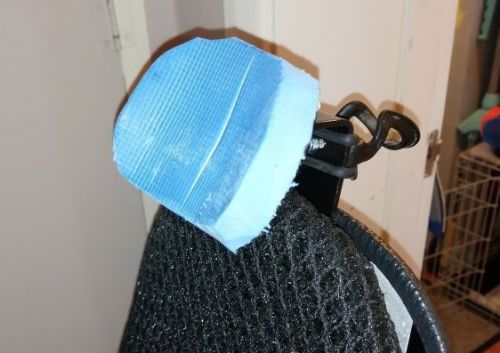 Made a headrest out of a strip of aluminium and a piece of melted chopping board, sprayed it black and added a light holder and gopro mount. Just need to knit a cover for it.